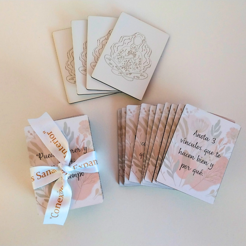 Raíz Viva son tarjetas grabadas en madera, pensadas para ser anclajes diarios de consciencia. Cada una contiene una afirmación o un reto que te invita a iniciar tu día desde un lugar de intención, reconexión y cambio. Creadas para sostener tus procesos personales con firmeza y belleza, estas piezas hablan en voz alta cuando tú lo necesitas: cuando el día se siente pesado, cuando te olvidas de ti, o cuando necesitas recordarte quién eres.
